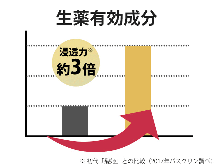 ※1 角質層まで ※2 初代「髪姫」との比較(2017年バスクリン調べ)